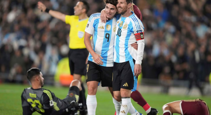 Emiliano Martínez; Gonzalo Montiel, Leonardo Balerdi, Nicolás Otamendi, Nicolás González; Giuliano Simeone, Rodrigo De Paul, Alexis Mac Allister, Giovani Lo Celso; José López y Nico Paz o Lionel Messi. DT: Lionel Scaloni.